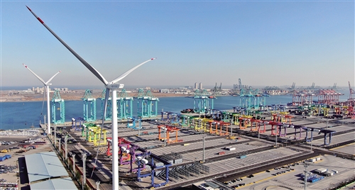 12月15日,隨著天津港北疆港區(qū)C段智能化集裝箱碼頭北側的兩臺風機葉片緩緩啟動,全球首個零碳碼頭智慧綠色能源系統(tǒng)投用,并在天津港并網發(fā)電。