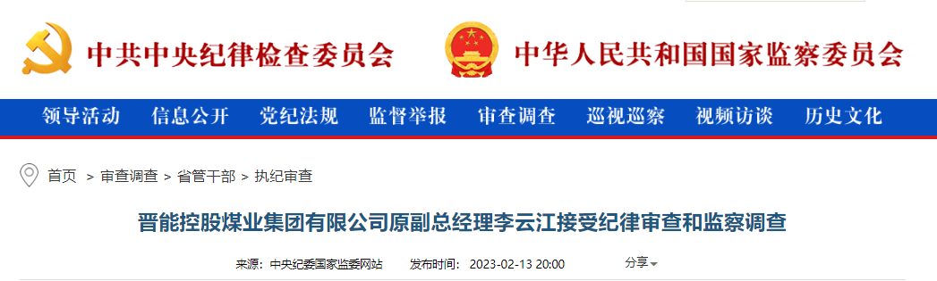中央紀(jì)委國家監(jiān)委網(wǎng)站2月13日消息, 據(jù)山西省紀(jì)委監(jiān)委消息:晉能控股煤業(yè)集團有限公司原副總經(jīng)理李云江涉嫌嚴重違紀(jì)違法,目前正接受山西省紀(jì)委監(jiān)委紀(jì)律審查和監(jiān)察調(diào)查。