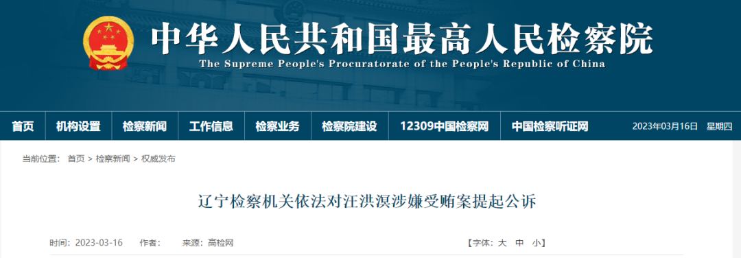遼寧省能源局原局長汪洪溟被提起公訴