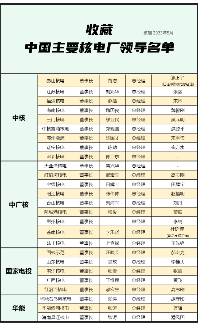 收藏!最新中國(guó)所有核電廠主要領(lǐng)導(dǎo)名單