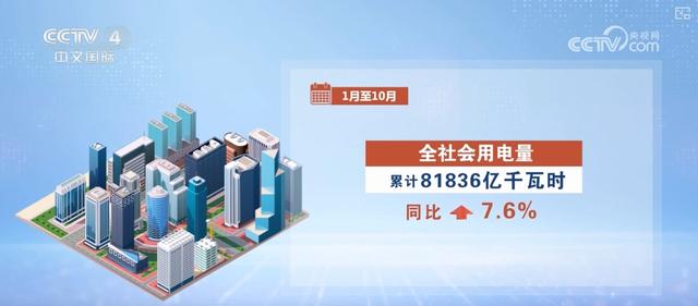 央視網消息:用電量被視為經濟運行的“風向標”之一。國家能源局最新公布的數據顯示,10月份,全社會用電量同比增長4.3%。穩(wěn)步增長的用電量數據,不僅反映了國民經濟延續(xù)回升向好的積極態(tài)勢,彰顯了中國經濟的活力,也顯示出經濟結構的優(yōu)化和新興產業(yè)蓬勃向上的動力。