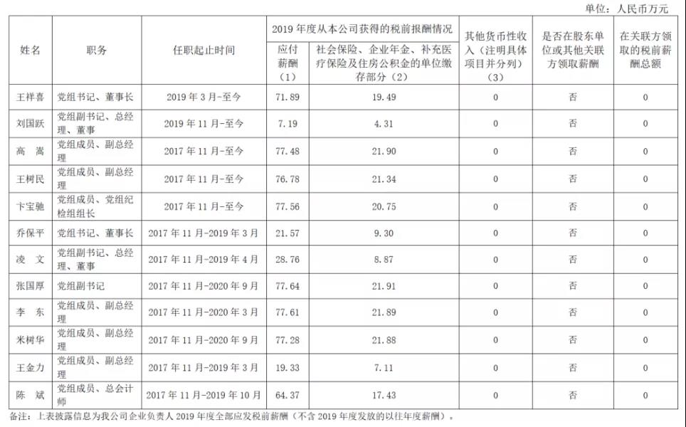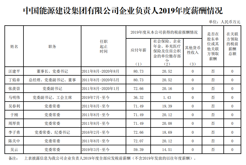 中國電力建設(shè)集團有限公司企業(yè)負(fù)責(zé)人2019年度薪酬情況