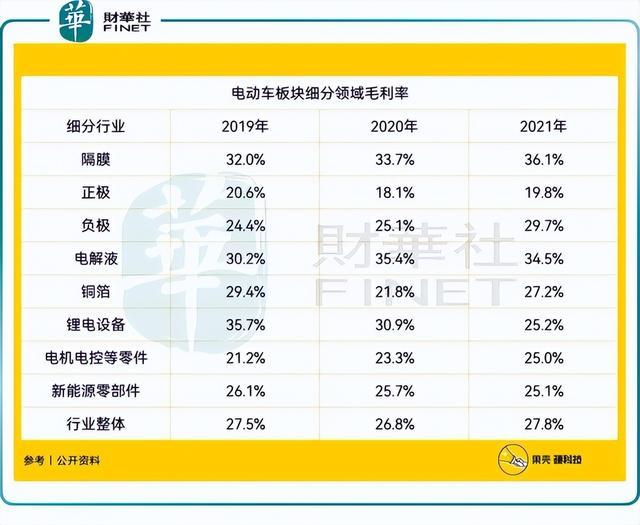 動(dòng)力電池的成本構(gòu)成是——正極40%,負(fù)極15%,隔膜20%,電解液15%,從成本端來(lái)看,隔膜并不是最高的,但是依然選擇恩捷股份(002812.SZ)的原因一是恩捷股份的市占率較高,寡頭效應(yīng)明顯;二是,隔膜行業(yè)的毛利率較高,如下所示。