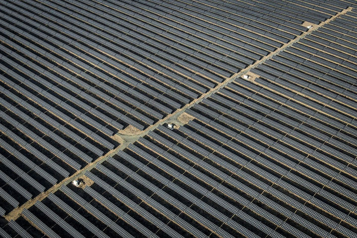 2023年12月7日拍攝的遼寧撫順礦業(yè)集團有限責任公司西舍場300MW光伏發(fā)電項目現(xiàn)場(無人機照片)。新華社記者 潘昱龍 攝