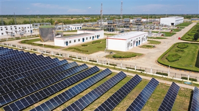 長慶油田第五采氣廠蘇里格天然氣第六處理廠廠區(qū)內(nèi)的光伏發(fā)電站。