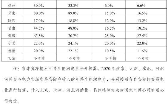 各省級行政區(qū)域2020年可再生能源電力