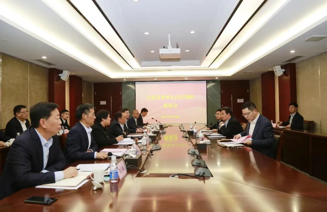 2021年10月28日,集團(tuán)公司黨委書記、董事長白忠泉到山東電工電氣調(diào)研。圖為白忠泉與山東電工電氣領(lǐng)導(dǎo)班子召開專題座談會。