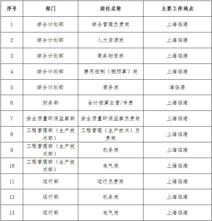 根據(jù)上海公司發(fā)展需要,現(xiàn)面向國家電投系統(tǒng)內(nèi)外公開招聘綜合管理、人力資源、安全質(zhì)量環(huán)保、機務(wù)、電氣等崗位,具體事項公告如下: