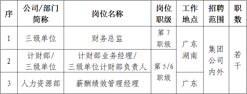 根據(jù)工作需要和公司招聘管理相關(guān)規(guī)定,現(xiàn)對廣東公司(海外公司)本部及下屬單位共3個崗位進行公開招聘。
