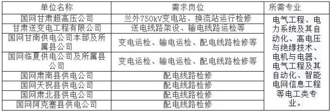 2.品行端正,吃苦耐勞,誠(chéng)實(shí)守信,愿意應(yīng)聘到國(guó)網(wǎng)甘肅電力基層單位生產(chǎn)一線(xiàn)崗位工作,服從用人單位分配。