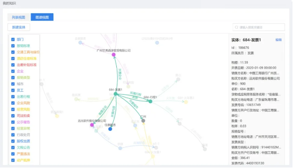 通過遠(yuǎn)光軟件“知識(shí)圖譜應(yīng)用平臺(tái)”的圖譜構(gòu)建模塊,可以將審單過程中需要用到的各種實(shí)體融合到一張圖中,非常直觀的定義各類實(shí)體間的關(guān)系。再通過RPA或外部系統(tǒng)提供的數(shù)據(jù)接口,將實(shí)體所對應(yīng)的具體數(shù)據(jù)導(dǎo)入,從而形成我們審單所需要的各類知識(shí)。單據(jù)中包含了哪些信息,哪些需要被重點(diǎn)關(guān)注,在圖中一目了然,真正做到了“哪里不清楚點(diǎn)哪里”。最后,將審單規(guī)則配置到圖譜中,就可以實(shí)現(xiàn)報(bào)銷單的自動(dòng)審核。