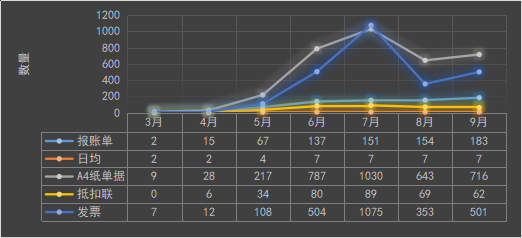 自2020年3月上線以來(lái),報(bào)賬單據(jù)交收的數(shù)據(jù)整體趨于增長(zhǎng),智能報(bào)賬機(jī)共處理各類報(bào)賬單709張,A4紙單據(jù)3430張,發(fā)票2560張,抵扣聯(lián)340張,業(yè)務(wù)準(zhǔn)確率達(dá)100%,大幅減少了財(cái)務(wù)人員的工作量。