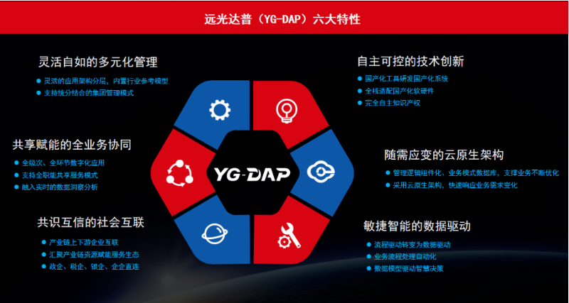 在創(chuàng)新性方面,遠光DAP具備自主可控的技術(shù)創(chuàng)新、隨需應(yīng)變的云原生架構(gòu)、靈活自如的多元管理、共享賦能的全業(yè)務(wù)協(xié)同、敏捷智能的數(shù)據(jù)驅(qū)動和共識互信的社會互聯(lián)六大特性,通過運用數(shù)字化相關(guān)技術(shù)和工具,推動企業(yè)提升數(shù)字能力,實現(xiàn)數(shù)字價值到商業(yè)價值的疊加,增強企業(yè)競爭力。