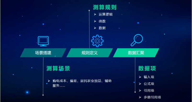 遠光軟件“代理購電測算”系統(tǒng)的基礎設計理念由三個詞構成:數據、規(guī)則、場景。