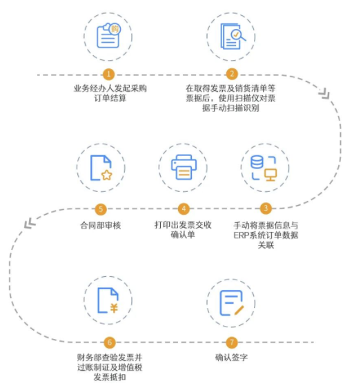 每一個業(yè)務過程環(huán)節(jié),都需要人工線下操作處理。僅在發(fā)票查驗環(huán)節(jié),就需配備6-7名財務人員。