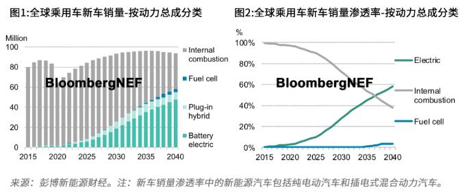彭博新能源財(cái)經(jīng)最新發(fā)布的《新能源汽車市場長期展望》報(bào)告指出,到2040年,新能源汽車在全球乘用車銷量的占比預(yù)計(jì)達(dá)58%,在乘用車保有量的占比達(dá)31%。除乘用車外,新能源車在公交車保有量的占比將達(dá)67%,在兩輪摩托車占比達(dá)47%,在輕型專用車占比達(dá)24%。