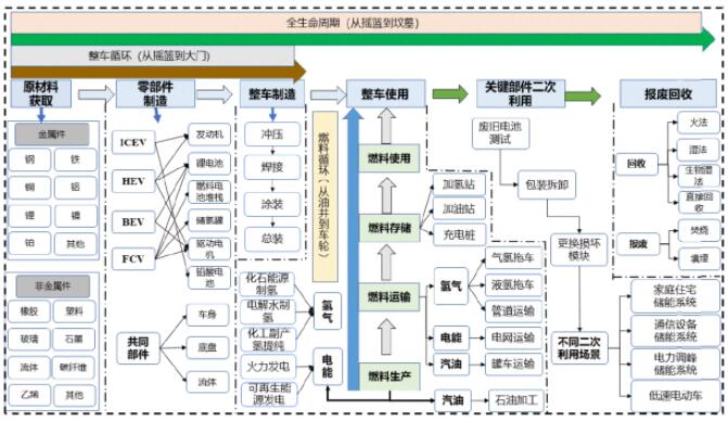 在這種評(píng)估思路下,汽車原材料的獲取、制造裝配、運(yùn)行使用、關(guān)鍵部件二次利用直至報(bào)廢回收過程中所產(chǎn)生的碳排放都應(yīng)該考慮在內(nèi)。