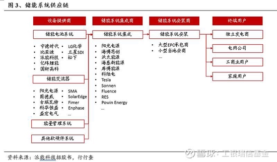 儲能產(chǎn)業(yè)鏈在電力體系中十分重要,諸多環(huán)節(jié)之間存在交集。儲能產(chǎn)業(yè)鏈上游主要包括電池原材料及生產(chǎn)設(shè)備供應(yīng)商等;中游主要為電池、電池管理系統(tǒng)、能量管理系統(tǒng)以及儲能變流器供應(yīng)商;下游主要為儲能系統(tǒng)集成商、安裝商以及終端用戶等。產(chǎn)業(yè)鏈涉及的環(huán)節(jié)眾多,從電池制造到EPC施工,再到各種場景下運營,電池制造環(huán)節(jié)與動力電池企業(yè)存在交集,EPC施工環(huán)節(jié)與光伏、風(fēng)電施工企業(yè)存在交集,運營商和電網(wǎng)企業(yè)存在交集。