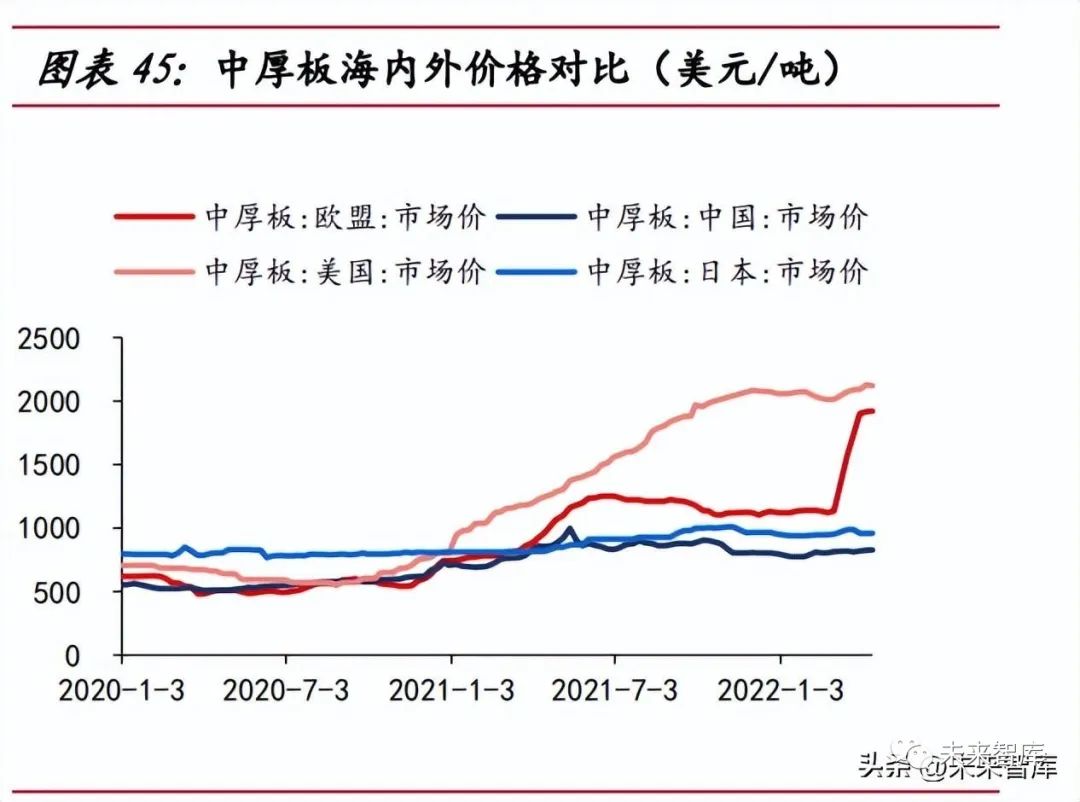 樁基無反傾銷稅限制,歐洲企業(yè)競爭力有限?,F(xiàn)階段樁基無反傾銷稅限制,參考 塔筒反傾銷稅的調查周期(約 10 年),未來 10 年有望成為樁基環(huán)節(jié)的出口黃金期。競爭對手方面,歐洲本土供應商的產(chǎn)能落后,歐洲本土樁基供應商產(chǎn)能有限,SIF、 EEW等四家主流供應商的年設計產(chǎn)能之和不足 600 根,且50%的產(chǎn)品直徑小于11米, 在歐洲風機大型化趨勢下,已難滿足大噸重以及大直徑的產(chǎn)品要求。塔筒出口受反傾銷稅影響。較低的反傾銷稅率能使國內(nèi)塔筒企業(yè)在海外市場中擁 有更強的議價能力?,F(xiàn)階段,大金重工在歐盟地區(qū)的反傾銷稅最低為 7.2%,泰勝風能 在澳洲地區(qū)的反傾銷稅為零,出口優(yōu)勢明顯。原材料價低造就競爭力。原材料價格方面,塔筒原材料主要有中厚板、法蘭等, 中厚板占原材料成本的占在 80%以上, 2022 年俄烏沖突,歐洲中厚板價格一度是我 國中厚板價格的兩倍,我國中厚板市場價長期低于國際市場,促使我國塔筒企業(yè)利潤 率高于海外企業(yè)。