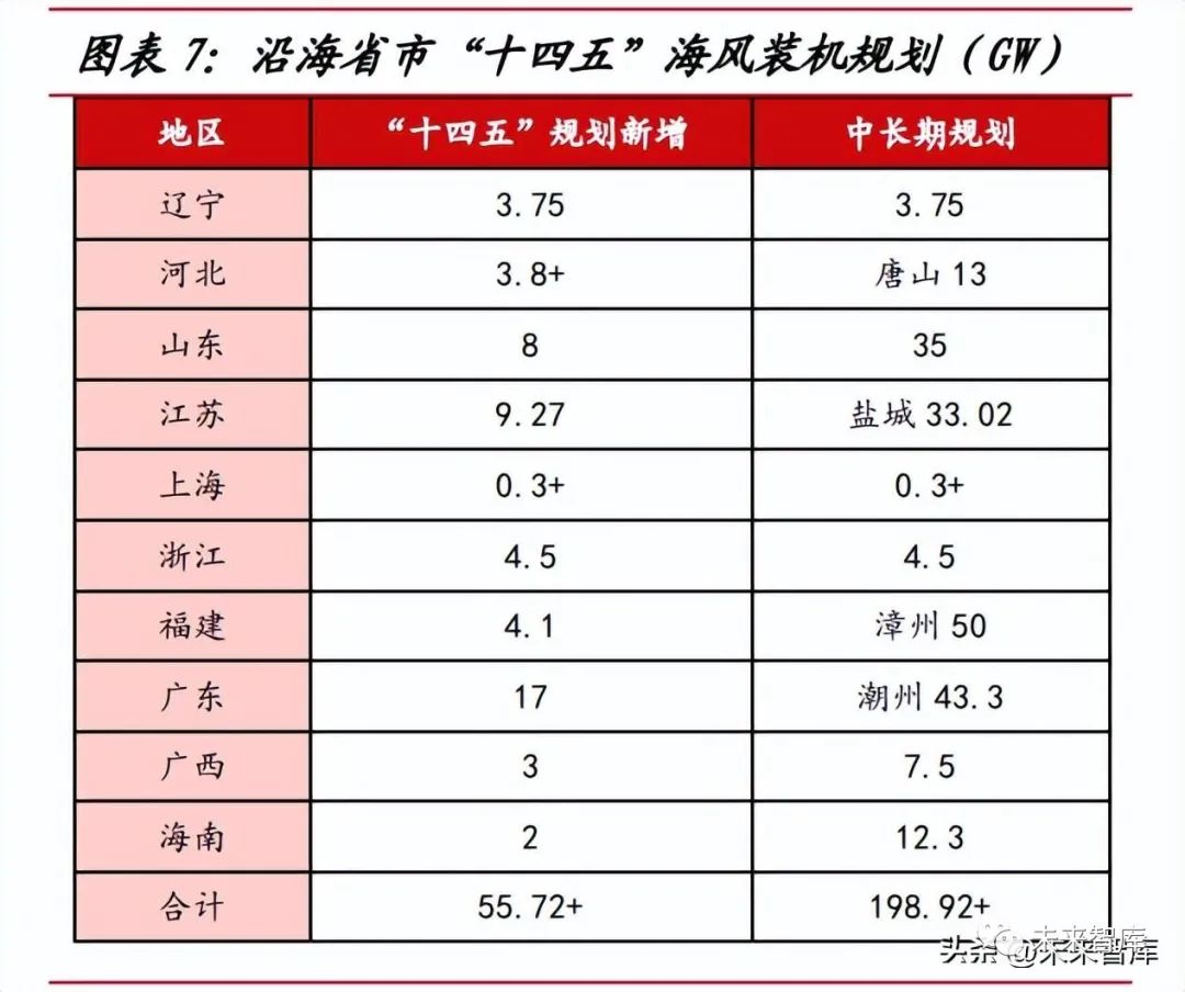 “十四五”規(guī)劃充沛,中長期發(fā)展可期。截至 2022 年,我國沿海省市已發(fā) 布“十四五”海上風電發(fā)展規(guī)劃,整體規(guī)劃新增裝機規(guī)模有望突破 55GW,2021- 22 年我國海風新增裝機約 21GW,對應 2023-25 年裝機規(guī)模約 34GW??紤]到部 分地區(qū)相關海風項目已實現(xiàn)平價上網(wǎng),海風降本超預期,再結合廣東、山東、浙江 等地區(qū)已出臺地補政策支持海風建設,我們預計海風需求以及新增裝機或超過沿海 地區(qū)規(guī)劃規(guī)模,中性假設條件下,2023-25 年我國海風新增裝機規(guī)模有望超 40GW, 2023 年在行業(yè)充沛的招標量下,新增裝機規(guī)模有望達 10GW,同比實現(xiàn)翻倍增長。根據(jù)風芒能源統(tǒng)計,我國已出臺的海上風電規(guī)劃體量接近 200GW,中長期發(fā)展空 間廣闊。