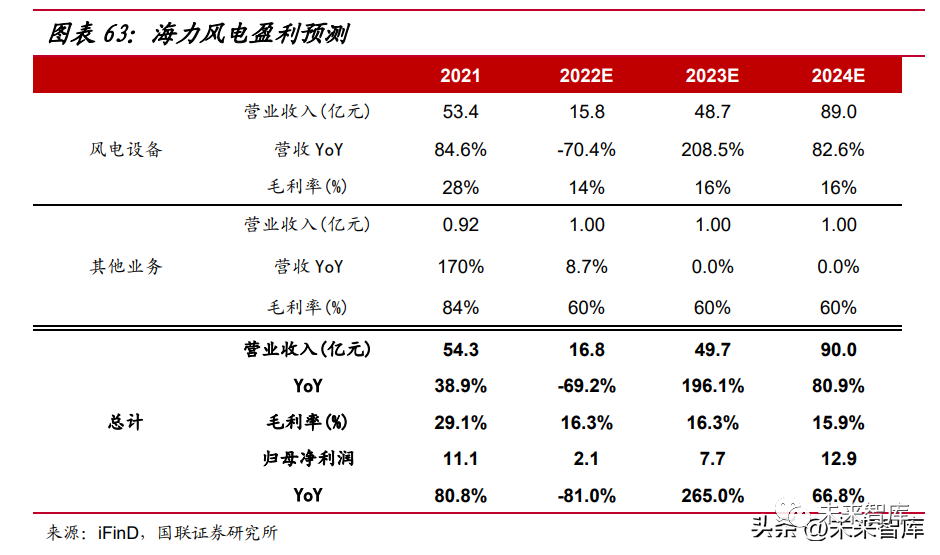 鑄造產(chǎn)能擴張帶動出貨量增長,盈利能力受益原材料價跌。預計公司 2022- 24 年有效鑄造產(chǎn)能預計共 2/7/15 萬噸,預計 2022-24 年公司鑄造主軸出貨 1.6/4.5/8.0 萬噸,對應收入 1.6/5.1/9.2 億元,預計其他鑄件于 2023 年較大規(guī)模出 貨,2023-24 年出貨量分別為 3/7 萬噸。受益于海內(nèi)外風電裝機需求提升,預計公 司 2022-24 年鍛造主軸出貨 14/17/20 萬噸,未來裝機需求提升將提升公司議價能 力,預計 2022-24 年風電業(yè)務毛利率為 32%/34%/36%。我們預計 2022-24 年歸母凈利潤分別為 3.81/6.58/9.62 億元,同比23.31%/72.75%/46.36%;EPS 分別為 1.45/2.51/3.68 元/股。