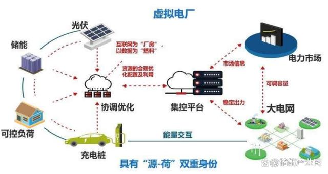 虛擬電廠(virtual power plant,簡稱VPP)是通過先進(jìn)信息通信技術(shù)和軟件系統(tǒng),實(shí)現(xiàn)分布式電源、儲能系統(tǒng)、可控負(fù)荷、電動汽車、充電樁等分布式能源的聚合和協(xié)調(diào)優(yōu)化,以作為一個特殊電廠參與電力市場和電網(wǎng)運(yùn)行的電源協(xié)調(diào)管理系統(tǒng)。虛擬電廠并不是真實(shí)存在的電廠,而是一種智能電網(wǎng)技術(shù),應(yīng)用分布式電力管理系統(tǒng)參與電網(wǎng)運(yùn)行調(diào)度,實(shí)現(xiàn)“源-荷-網(wǎng)”聚合優(yōu)化。