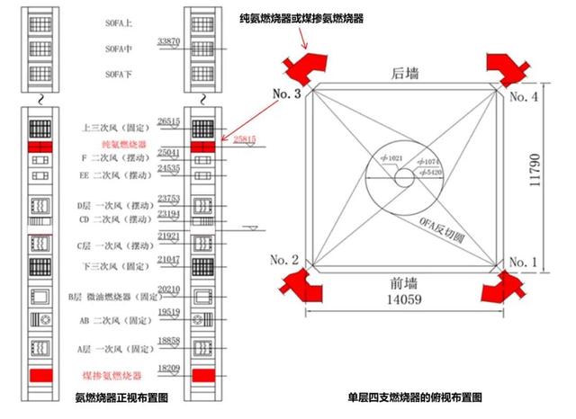 煤粉和純氨燃燒器布置圖