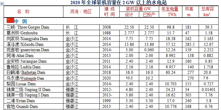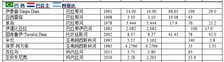 梯級水電站是世界上發(fā)展水力發(fā)電的一個重要的獲取電力的方式。在制作下表時,我把相同一河流的水電站歸納在一起,您可以看出,世界上許多河流都是梯級水電站。
