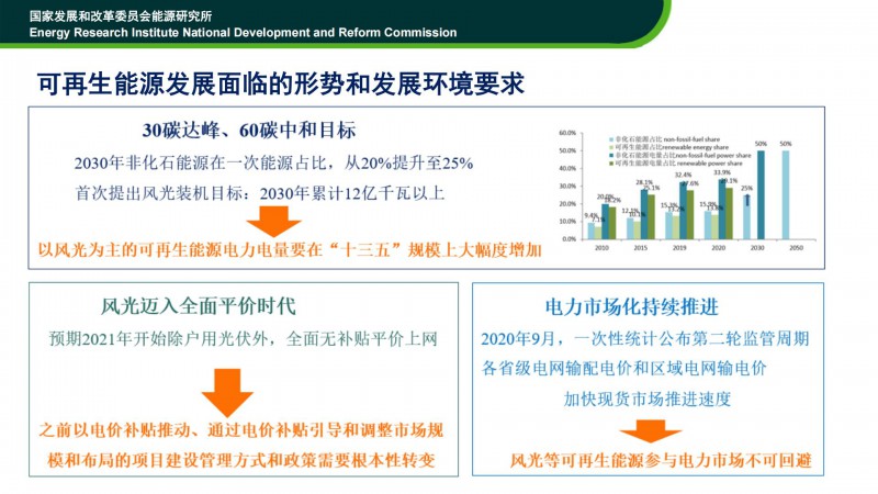 時(shí)璟麗老師在“2021光伏領(lǐng)袖大會(huì)”上的發(fā)言稿。時(shí)老師認(rèn)為:可再生能源要在能源轉(zhuǎn)型中發(fā)揮重要作用。2050年,中國(guó)要建成高比例可再生能源電力系統(tǒng)。其中,非化石能源占比將達(dá)到91%,風(fēng)電、光伏占比將達(dá)到73%!未來(lái)可再生能源的發(fā)展,從資源、技術(shù)、產(chǎn)業(yè)、經(jīng)濟(jì)性角度,均不存在瓶頸與障礙!