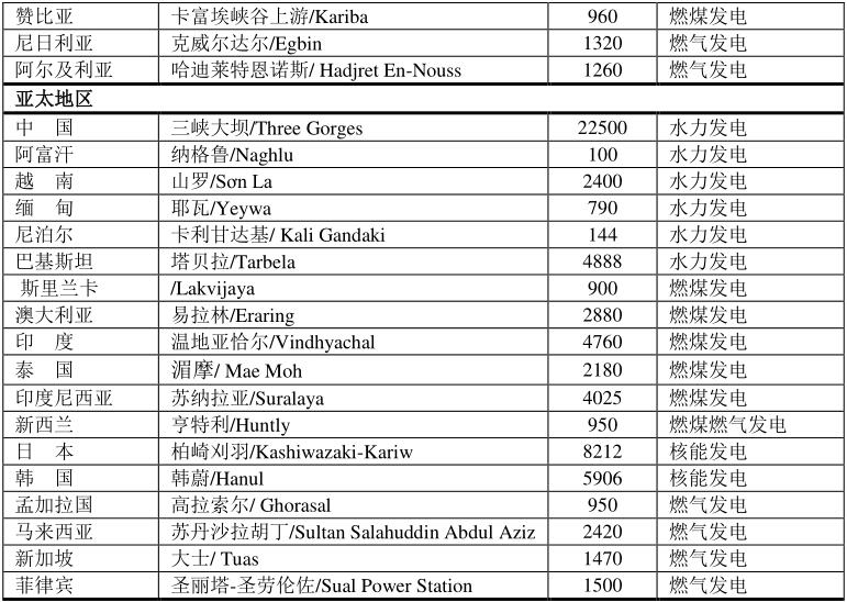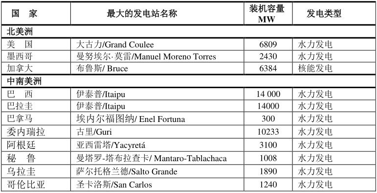 “世界各國(guó)最大的發(fā)電站”只是指最大的,可以看見最大最多的發(fā)電站最多的仍然是水力發(fā)電,其次為核能發(fā)電、燃煤發(fā)電;也有燃?xì)獍l(fā)電。根據(jù)各國(guó)的資源不同,最大的發(fā)電站也有特色,如中南美洲以水力發(fā)電為主,亞太地區(qū)的水力發(fā)電也很發(fā)達(dá)。