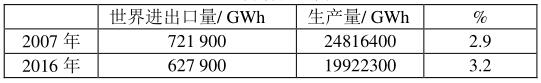 根據(jù)BP 2019的報告,2018年全球發(fā)電量為26614.8 TWh,因此,2018年全球電力貿(mào)易量為: