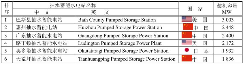 世界上第一座抽水蓄能電站是瑞士于1879年建成的勒頓抽水蓄能電站。當(dāng)今世界上最大的抽水蓄能電站是美國巴斯康蒂抽水蓄能電站,裝機容量達(dá)3003MW,其次為中國惠州抽水蓄能電站,裝機容量為2448 MW,廣東抽水蓄能水電站(Guangdong Pumped Storage Power Station),裝機容量為2400MW。
