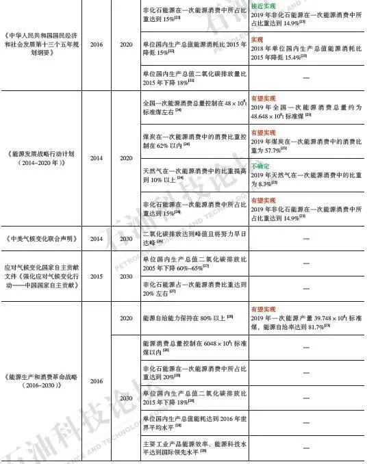 截至2020年,從中國主要能源政策目標(biāo)的完成情況可以看出:(1)中國作為世界能源生產(chǎn)、消費(fèi)第一大國,在能源消費(fèi)總量控制、非化石能源消費(fèi)比例以及單位國內(nèi)生產(chǎn)總值能耗和碳排放方面的目標(biāo)完成情況良好;(2)交通能效及新能源汽車產(chǎn)業(yè)指標(biāo)完成情況不理想。