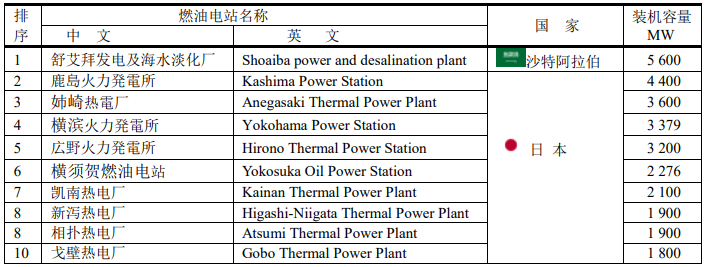 全球十大燃油電站