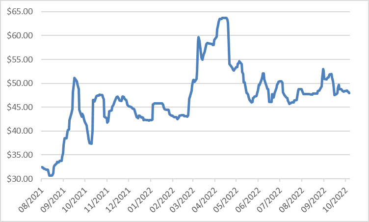 三季度,天然鈾市場(chǎng)動(dòng)態(tài)基本在預(yù)測(cè)的框架內(nèi)演變。美國(guó)(及全球多數(shù)國(guó)家)通脹指數(shù)居高不下,美聯(lián)儲(chǔ)分別在7月和9月再次加息75點(diǎn),試圖遏制通脹,導(dǎo)致美股從8月中開始轉(zhuǎn)向下跌,跌至9月底2020年以來的最低點(diǎn),各大股指跌幅高達(dá)15-20%。加拿大上市鈾投資基金斯普羅特(SPUT)是過去一年鈾價(jià)上漲的主要推手,三季度,受金融市場(chǎng)大環(huán)境影響,斯普羅特股價(jià)持續(xù)低迷,融資規(guī)模大幅減少,季度僅采購(gòu)175萬磅(673噸鈾),較2021年三季度(4277噸鈾)、2021年四季度(4641噸鈾)、2022年一季度(4688噸鈾)、2022年二季度(1289噸鈾)采購(gòu)量大幅降低。三季度,俄烏局勢(shì)沒有給天然鈾市場(chǎng)帶來新的影響,之前分析的結(jié)論沒有變化,即美歐核電業(yè)主短期內(nèi)無法擺脫對(duì)俄核燃料的依賴,但正在加快去俄羅斯化的進(jìn)程
