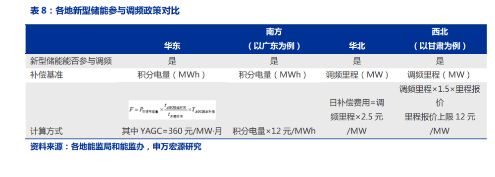 調頻輔助服務經常因其名稱而讓人迷惑,但調頻輔助服務本質上還是對電能量的調節(jié)。 調頻輔助服務理論上就是為了彌補調頻輔助服務是為了彌補電力市場和調峰輔助服務無法 解決的實時平衡問題,主要依靠自動控制技術來進行調整。 調頻已經成為儲能的重要收入來源之一。各地陸續(xù)允許新型儲能參與調頻輔助服務市 場,而目前在多數(shù)地區(qū),調頻輔助服務已經成為儲能最重要的收益來源。對于調頻輔助補 償基準,華東和南方區(qū)域采用積分電量(即調頻容量乘以調用時間),而華北和甘肅則采 用調頻里程(即調頻容量乘以調用次數(shù))。調頻補償?shù)挠嬎惴绞讲⒉恢匾?,重要的是看新型儲能參與調頻輔助服務相比于火電等傳統(tǒng)機組是否存在優(yōu)勢。華東、南方區(qū)域儲能與火 電相比,補償計算方式沒有任何區(qū)別。華北區(qū)域同等調頻里程情況下,儲能的補償費用僅 有火電的一半。而對于甘肅省,補償費用則高于火電。