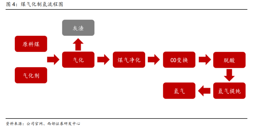 以煤為原料制氫氣的方法主要有兩種: 一是煤氣化制氫。煤氣化是指在高溫常壓或高溫高壓條件下,煤與水蒸氣或氧氣(空氣) 反應(yīng)轉(zhuǎn)化為以氫氣和 CO 為主的合成氣,再將 CO 經(jīng)水氣變換反應(yīng)得到氫氣和 CO?的過(guò) 程。煤氣化制氫工藝成熟,目前已實(shí)現(xiàn)大規(guī)模工業(yè)化。傳統(tǒng)煤制氫采用固定床、流化床、 氣流床等工藝,碳排放較高。 二是煤超臨界水氣化制氫,是新型煤制氣工藝。超臨界水氣化過(guò)程是在水的臨界點(diǎn)以上(溫 度大于 647K,壓力大于 22MPa)進(jìn)行煤的氣化,主要包括造氣、水氣變換、甲烷化三個(gè) 變換過(guò)程。可以有效、清潔地將煤轉(zhuǎn)換為 H2 和純二氧化碳。2022 年 8 月南控集團(tuán)下屬 景隆公司與新錦盛源公司簽約開展煤炭超臨界水氣化制氫項(xiàng)目合作。