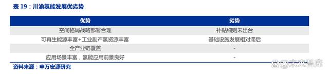 當(dāng)前,氫能尚處于商業(yè)導(dǎo)入期,氫能產(chǎn)業(yè)的發(fā)展有三個(gè)環(huán)節(jié)——上游制儲(chǔ)運(yùn)、中游燃料電池核心零部件、下游應(yīng)用端,各重點(diǎn)城市群在氫能建設(shè)的道路上尚在突破阻礙,蓄力布局中。川渝地區(qū)在地理位置、氫能資源、產(chǎn)業(yè)鏈體系建設(shè)等方面優(yōu)勢(shì)巨大,申報(bào)此次示范城市群成功可能性極大。川渝地理位置優(yōu)越,空間格局戰(zhàn)略部署合理,形成“一軸、一港、一區(qū)、三路”的“1113”發(fā)展格局。并且,川渝地區(qū)可再生能源豐富,擁有得天獨(dú)厚的發(fā)展優(yōu)勢(shì),同時(shí),在成都市,煤化工廠分布密集,副產(chǎn)氫資源頗豐,導(dǎo)致上游制氫成本低。除此之外,川渝氫能產(chǎn)業(yè)制造實(shí)力強(qiáng),現(xiàn)已掌握氫燃料電池、氫源制備、加氫儲(chǔ)氫裝備等領(lǐng)域核心技術(shù),聚集產(chǎn)業(yè)鏈企業(yè)及科研院所200余家,成為了國(guó)內(nèi)氫能產(chǎn)業(yè)鏈基礎(chǔ)較為完整的地區(qū)之一。在應(yīng)用端,川渝地區(qū)應(yīng)用氫能應(yīng)用前景良好,截止到2021年底,成渝地區(qū)實(shí)現(xiàn)了440輛的燃料電池汽車(chē)的產(chǎn)業(yè)化示范應(yīng)用,配套建成了15座加氫站。