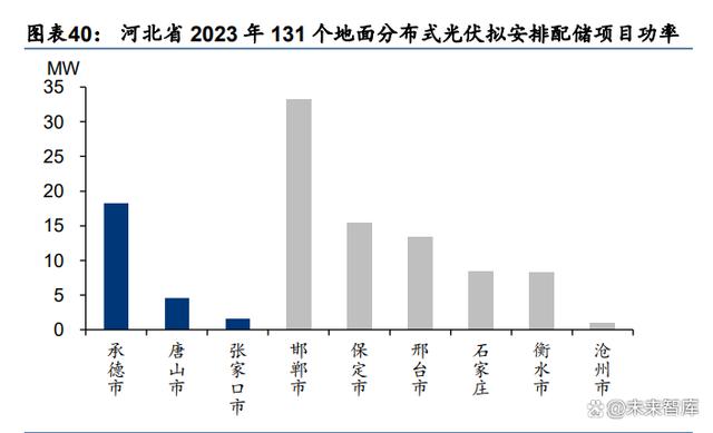 河北案例:以河北省發(fā)改委公示的河北省 2023 年地面分布式光伏擬安排項(xiàng)目來看,共計(jì) 302 個(gè) 項(xiàng) 目 ,總 規(guī)模 1.43GW ,其中 131 個(gè) 項(xiàng)目 承諾 按要 求配 置儲(chǔ) 能,總規(guī)模 104MW/204MWh。需要注意的是,131個(gè)承諾按要求配儲(chǔ)的地面分布式光伏項(xiàng)目,均位于 無開放容量區(qū),而在可開放容量范圍內(nèi)的 171個(gè)項(xiàng)目均無需承諾配置儲(chǔ)能。