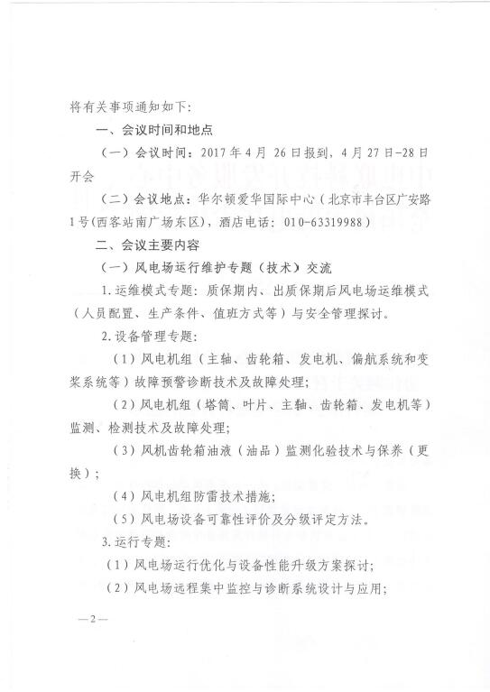 關(guān)于召開2017年(第三屆)風(fēng)電場運行維護專題交流研討會的通知