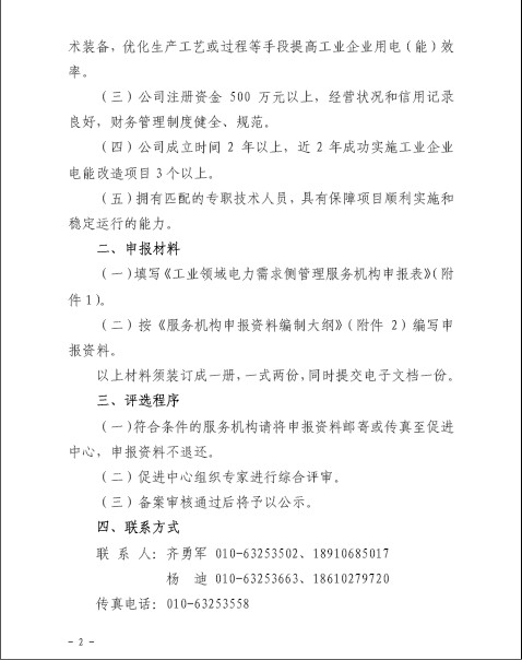 關(guān)于征集工業(yè)領(lǐng)域電力需求側(cè)管理服務(wù)機(jī)構(gòu)的通知